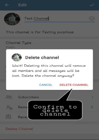 - Confirm to delete channel.