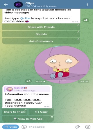 ➡ Just type @clips in any chat and choose a meme video 🤣