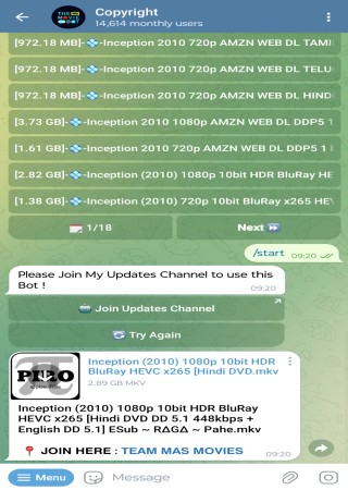 ➡ When you click on the movie name, you will get a request to join any one channel. Join that channel and click try again button