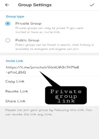-> If you want group to be private, select "Private Group", you will get unique link. Share it with your friends and family to join group.