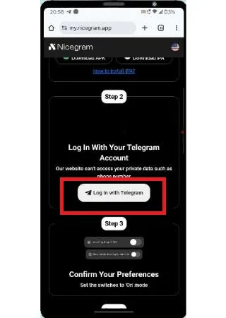 - Now open the Nicegram app which you already installed and login using your Telegram account.