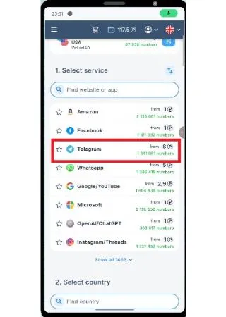- Now, Use the virtual number to create an account on Telegram, you will get the OTP for registration on 5Sim website.